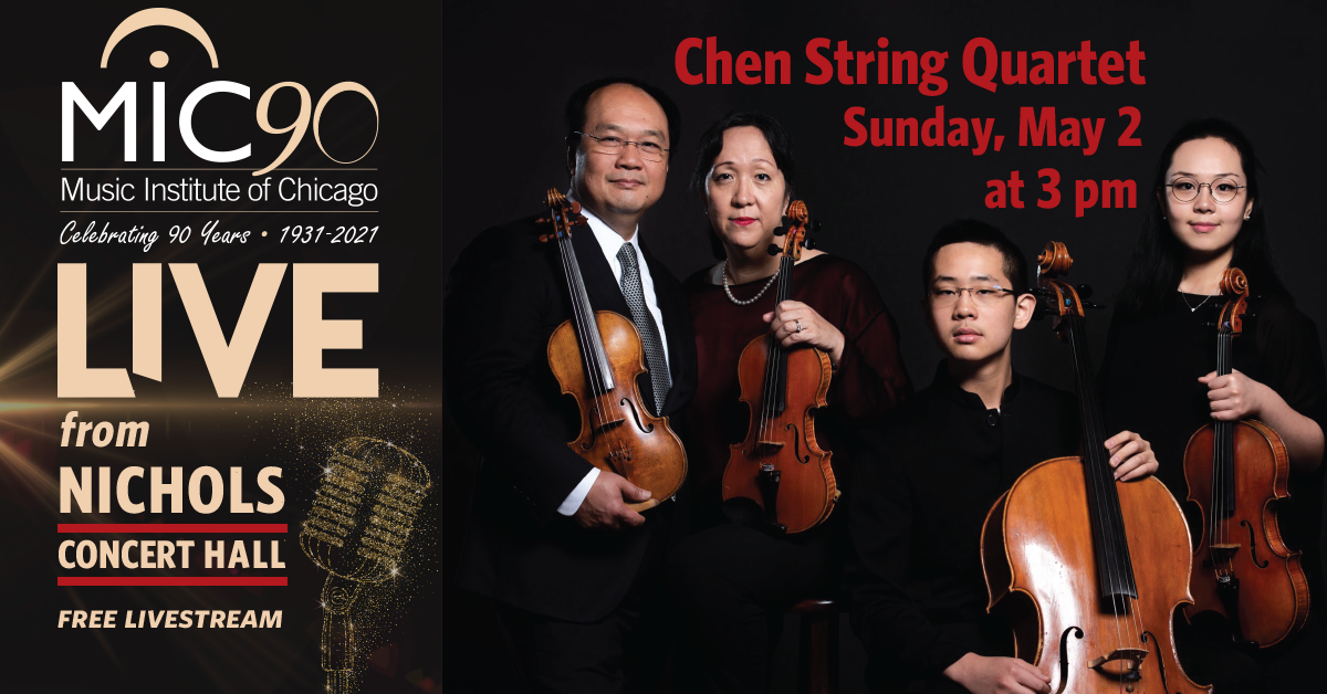 The Music Institute of Chicago opens its concert home to family homes worldwide through the presentation of “Live from Nichols Concert Hall,” a free chamber music series April 11–May 2 streamed live from its historic Nichols Concert Hall. This series is part of the Music Institute’s 90th anniversary year, which celebrates innovation, access, and excellence in music education, service to the community, and music performance.